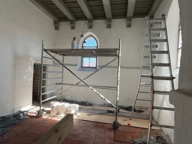 dog er kirken lukket indtil videre grundet følger efter skimmelsvamp og fund af kalkmalerier
